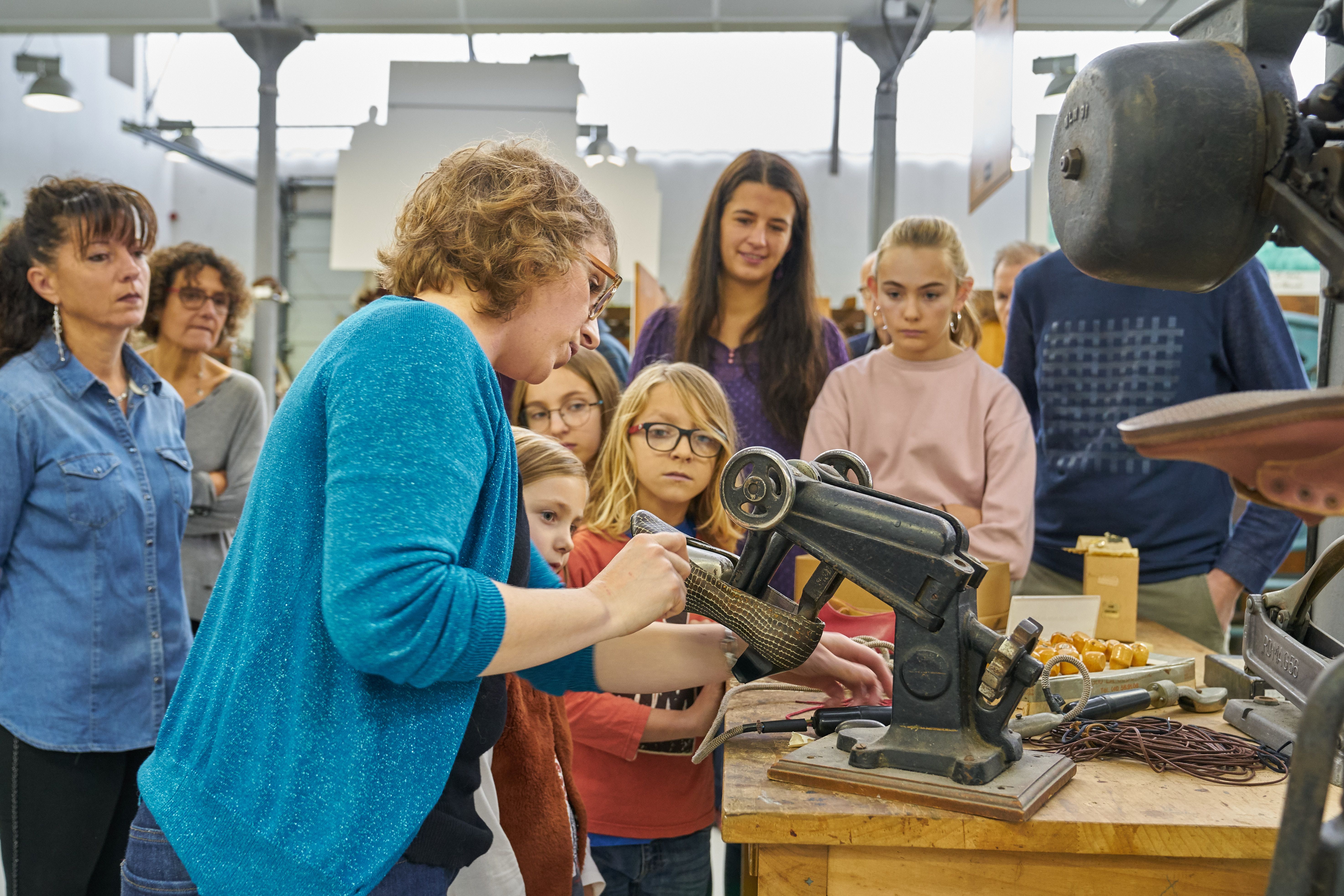 Cette visite propose aux enfants de découvrir les étapes nécessaires pour fabriquer une chaussure mais aussi les machines pour les concevoir. C'est également l'occasion s'imprégner de l'ambiance d'une usine, notamment à travers le bruit produit par les mécaniques mises en route lors de la visite.